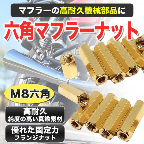 > 【新品】汎用 マフラーナット バイク 金 マフラー ナット ゴールド 六角 真鍮 メッキ 金メッキ ロング フランジナット 六角ナット 4個