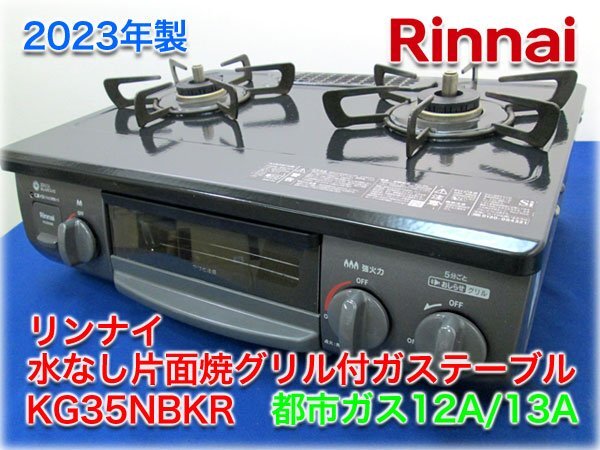 > 【2023年製】リンナイ 水なし片面焼グリル付ガステーブル KG35NBKR 都市ガス12A・13A 右強火力 ワンピーストップ 【長野発】