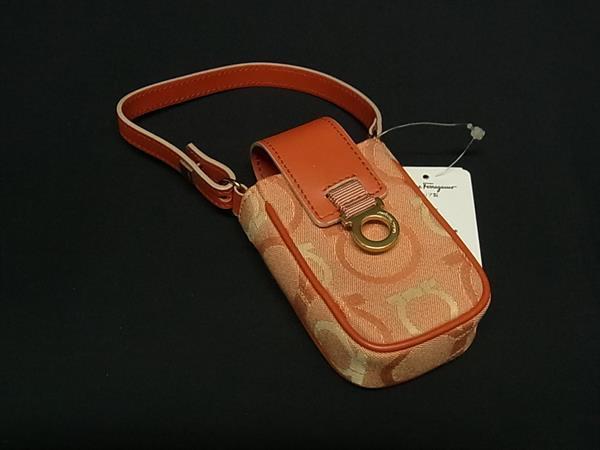 > 1円 ■美品■ Salvatore Ferragamo フェラガモ IX-22 5107 ガンチーニ キャンバス×レザー マルチケース 小物入れ オレンジ系 BQ1501