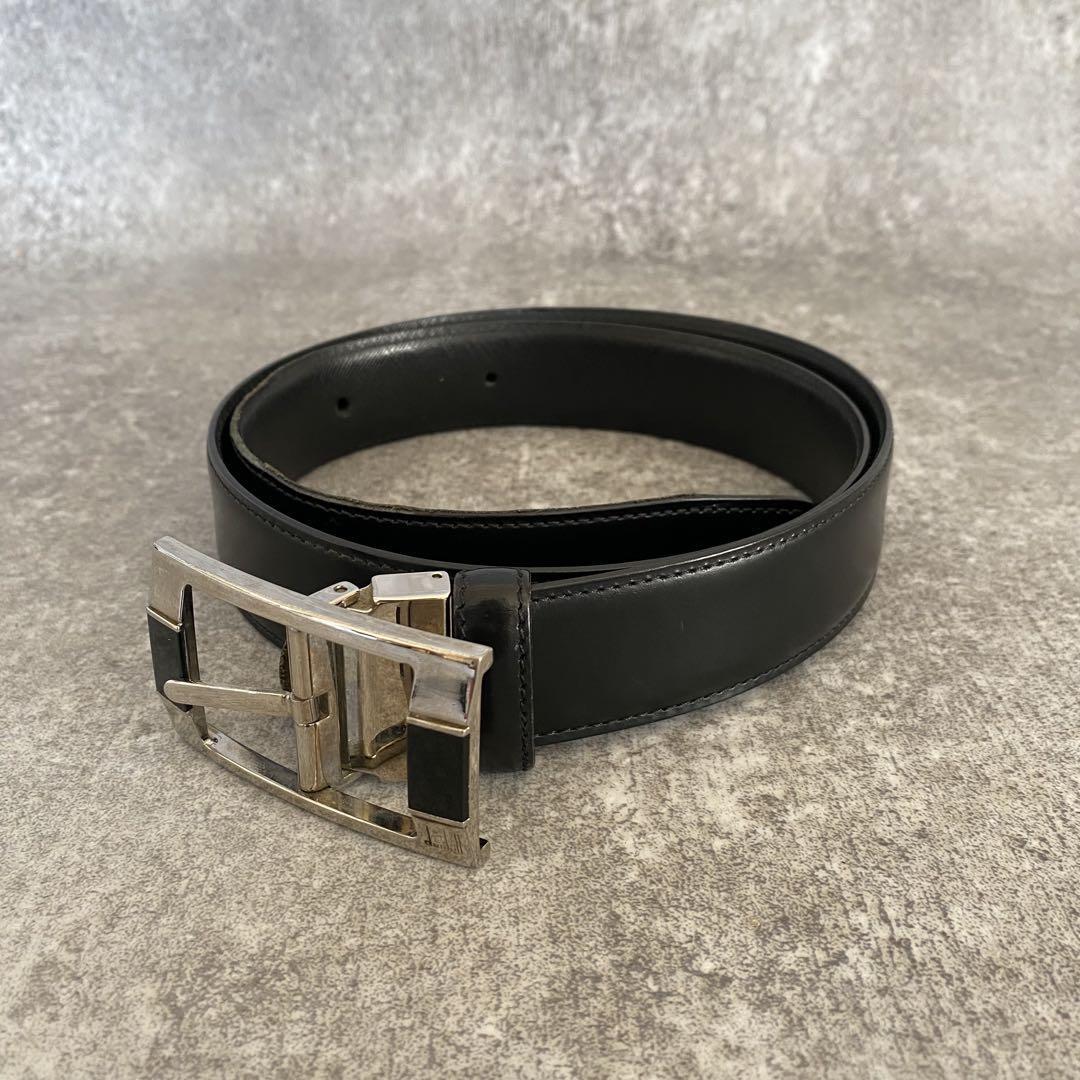 - dunhill ダンヒル ベルト レザー ブラック シルバー ヴィンテージ