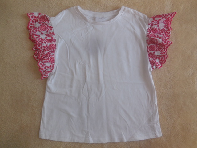 > ■ZARA■ザラ■9歳■135サイズ■白地に赤い刺繍袖■半袖カットソー■