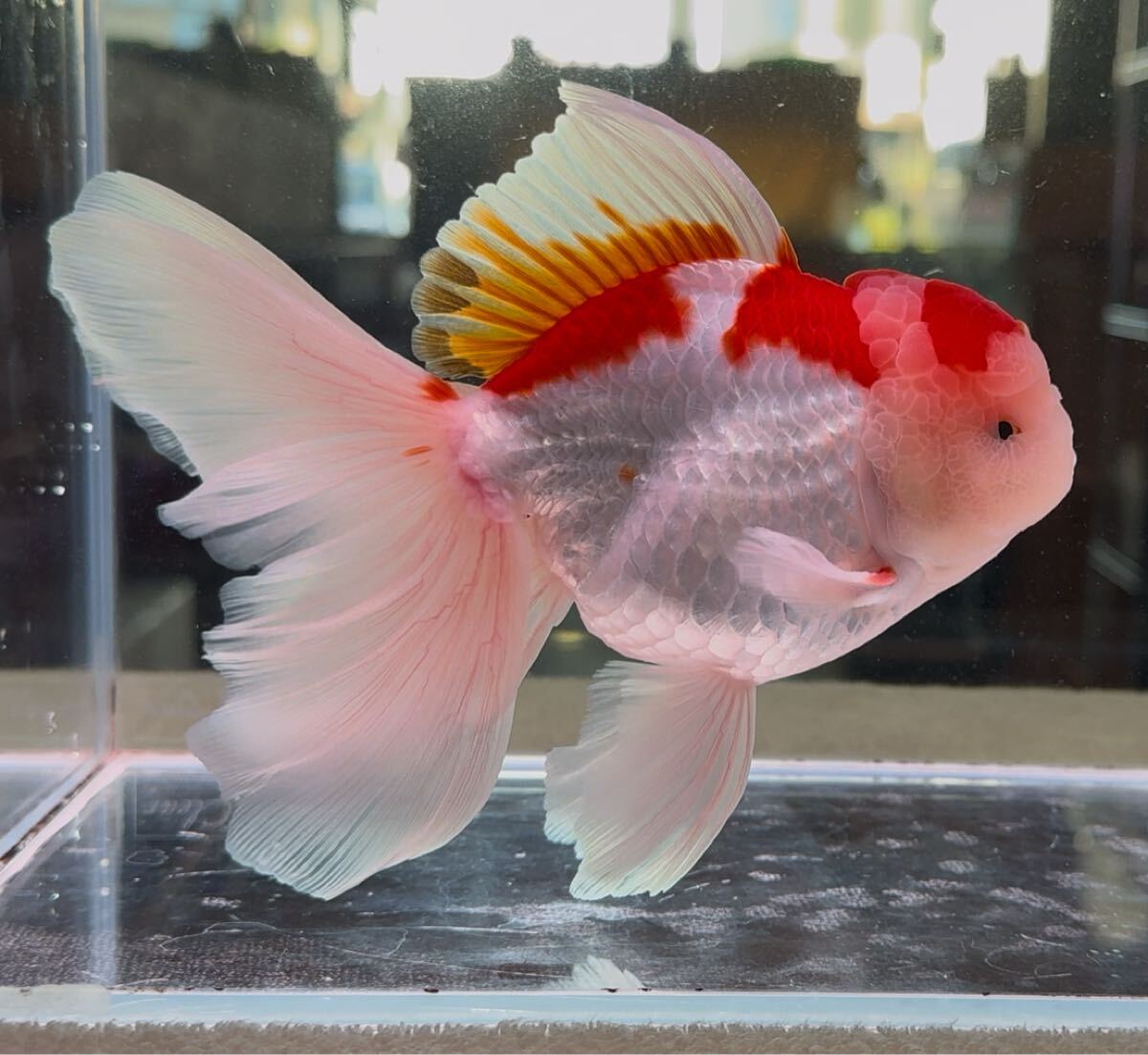 > 【AQUA SHOP 麒麟】超極上 モンスター ローズテールオランダ ビッグフィン 更紗 オランダ獅子頭 18㎝±