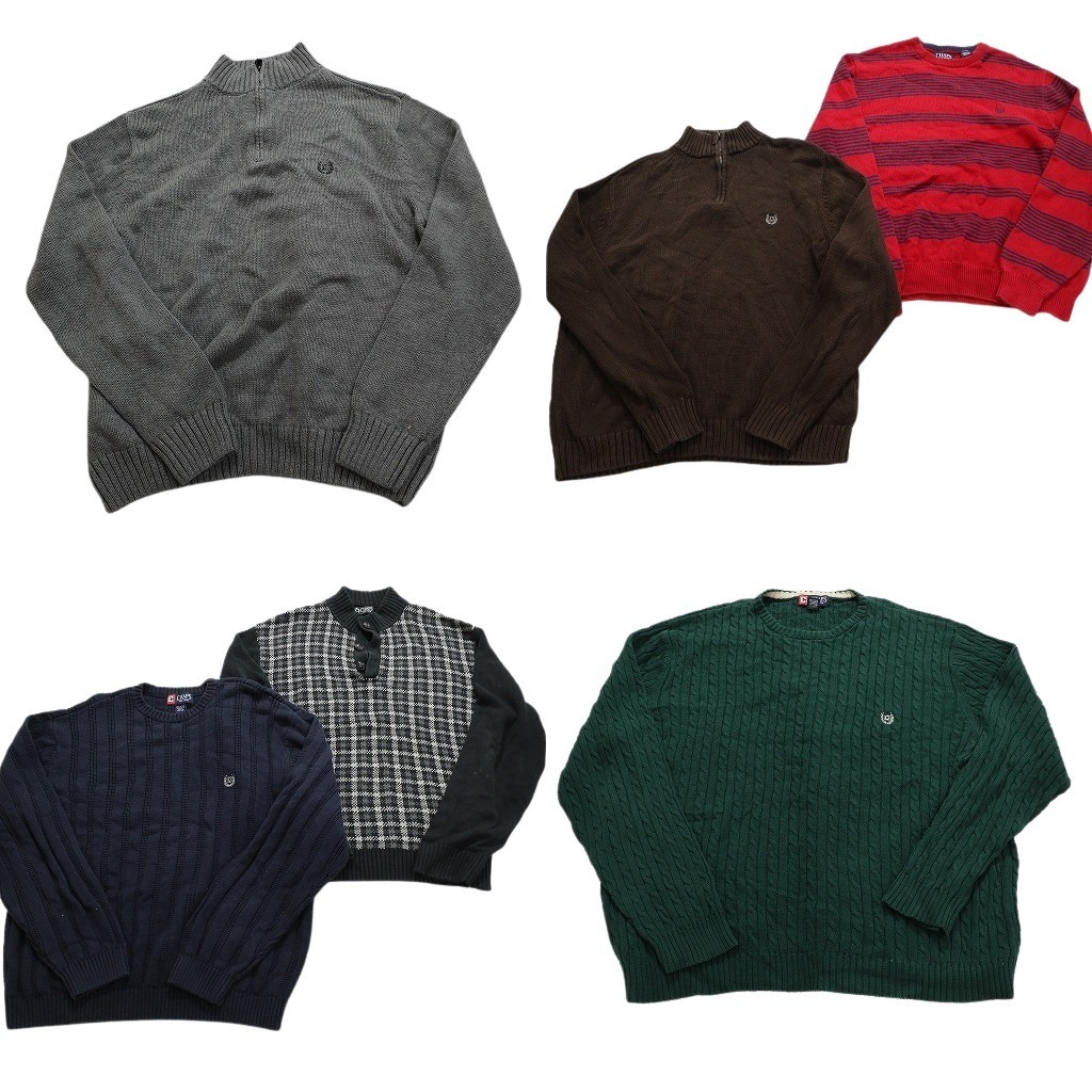 > 古着卸 まとめ売り チャップス CHAPS セーター 6枚セット (メンズ XL ) ハーフジップ ケーブル編み チェック ボーダー NC2891 1円スタート