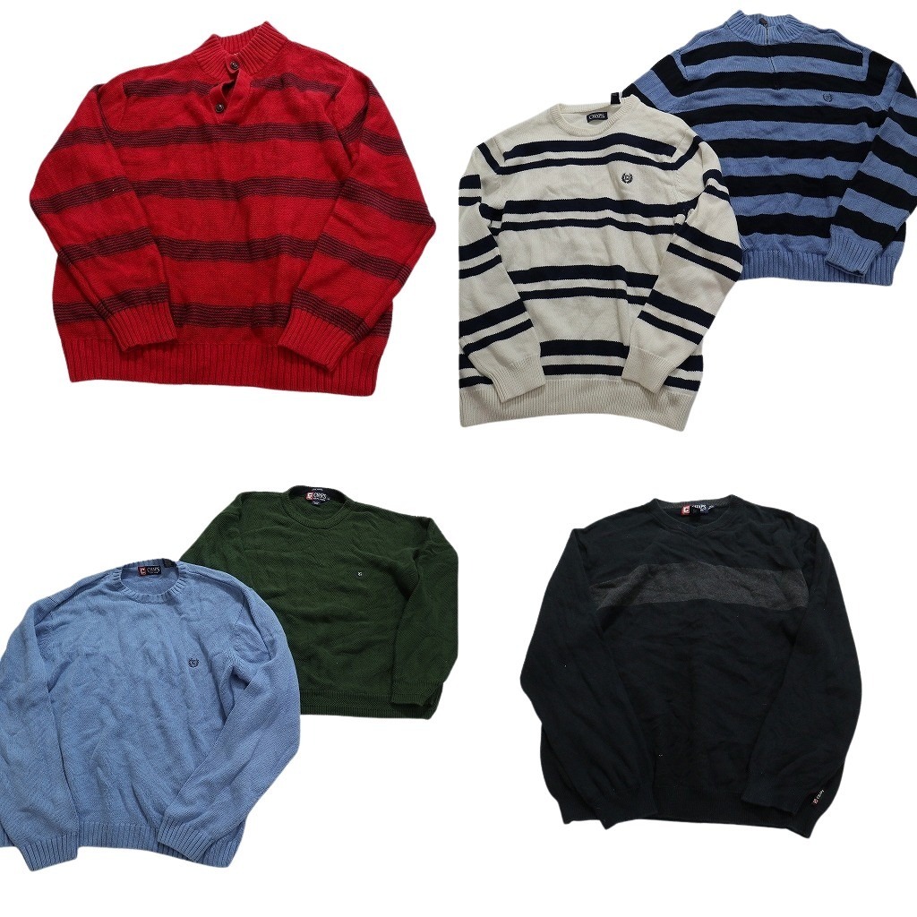 - 古着卸 まとめ売り チャップス CHAPS セーター 6枚セット (メンズ L /XL ) ボーダー ハーフジップ ハーフボタン NC2892 1円スタート