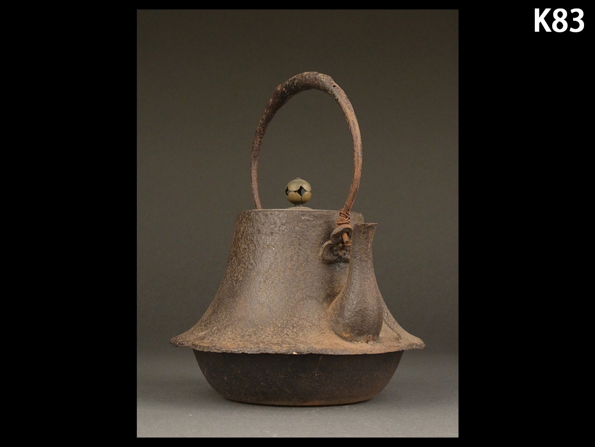 - K83☆時代煎茶道具 釜師 作家物 唐銅蓋 富士形 鉄瓶/鉄壺 湯沸 急須