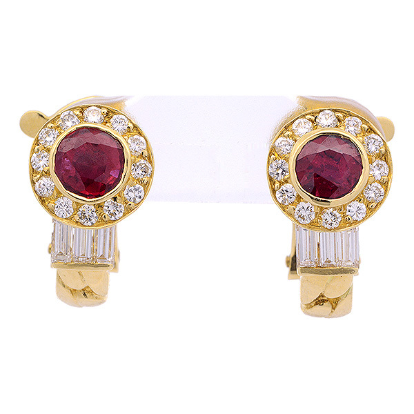 - ブシュロン ルビー ダイヤ ピアス K18YG 新品仕上げ済み♪送料無料・返品可.