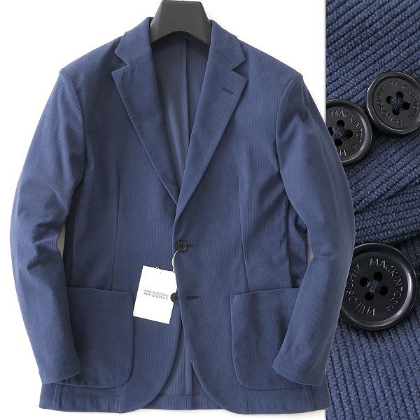 > 新品 4.4万 マッキントッシュフィロソフィー コーデュロイ ジャージー ジャケット 42R(XL) 青 【J47234】 秋冬 メンズ 起毛 ブレザー