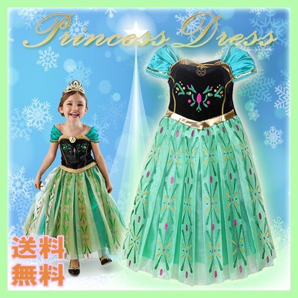 - グリーン ドレス 子供用 100~140cm ディズニー 子供 キッズ お姫様コスプレハロウィン 仮装衣装 誕生日 プリンセス アナ雪 アナと雪の女王