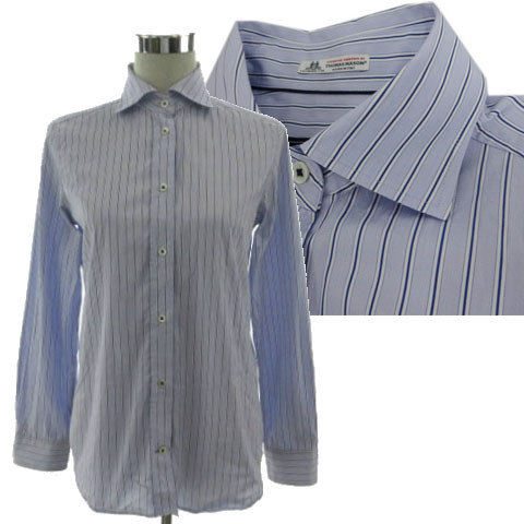- ラエフ la.f... 《THOMAS MASON》シンプルベーシックシャツ 3613-31805 ホリゾンタルカラー コットン ストライプ ブルー系 青系 白 3