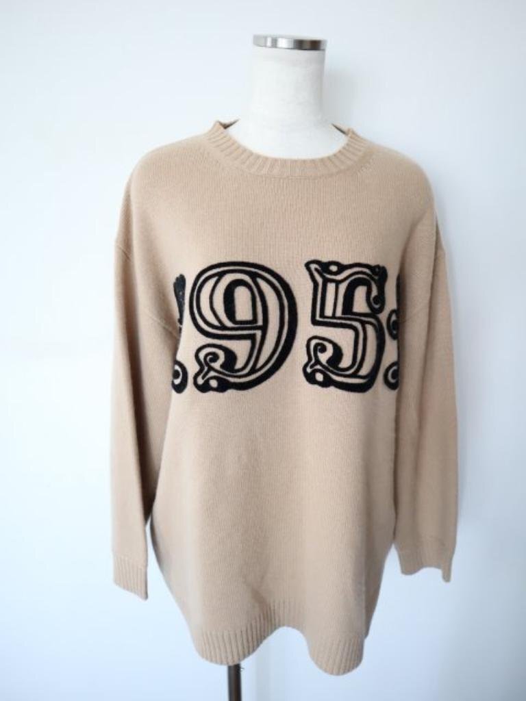 > 【送料込】MAX MARA マックスマーラ 1951アンバーサリーロゴクルーネックニット Mサイズ ベージュ×ブラック ハイブラ 6457860
