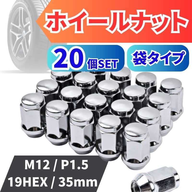 > ホイールナット M12 P1.5 35mm 19HEX 袋ナット スチールナット 20個 セット トヨタ マツダ ホンダ ダイハツ ミツビシ