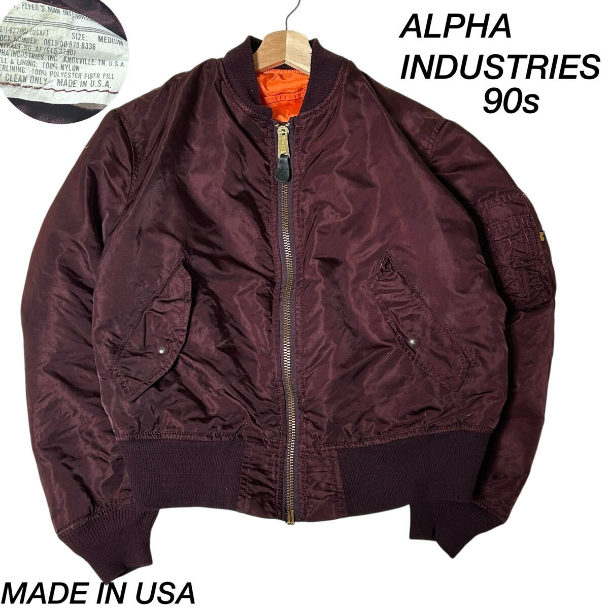 > 90s 希少カラー ALPHA INDUSTRIES MA-1 USA製 ボルドーレッド Lサイズ 人気アイテム