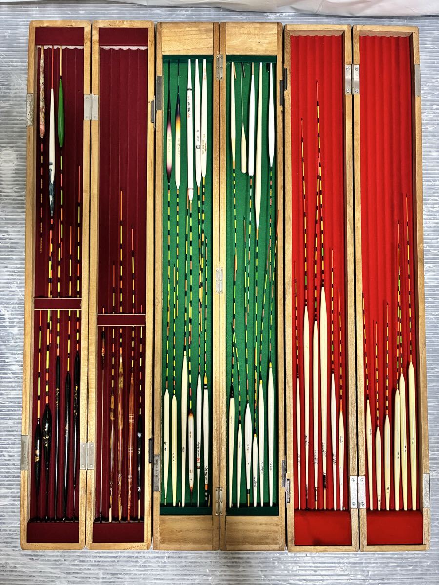 - P247 へら浮き ヘラウキ 浮き ヘラ浮き 棒ウキ 47本 +ケース3点付 鶴双 秀舟/一舟/碧舟/流水/すみだ川/牛若/酔蓮/至宝/三水/かちどき/月山