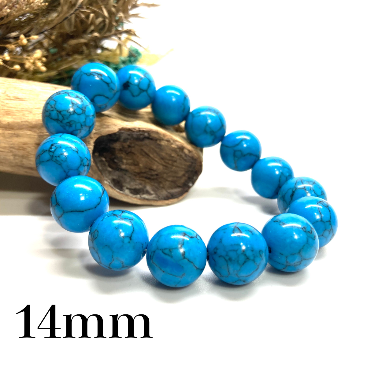 - ターコイズ パワーストーン ブレスレット 14mm (シンプル) 開運 浄化 数珠ブレス メンズ 男性 プレゼント 14ミリ