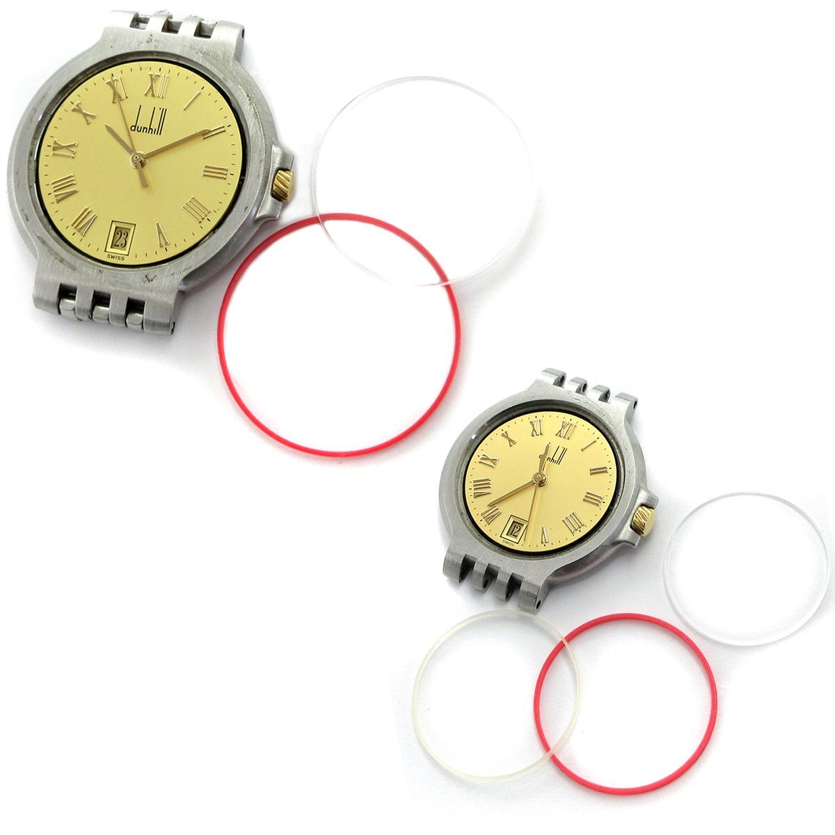 - ダンヒル ムーブメント ETA 256.111 ETA 255.411 クォーツ 2点セット ローマ数字 ゴールド Dunhill 【ムーブメントのみ】 パーツ 部品取り