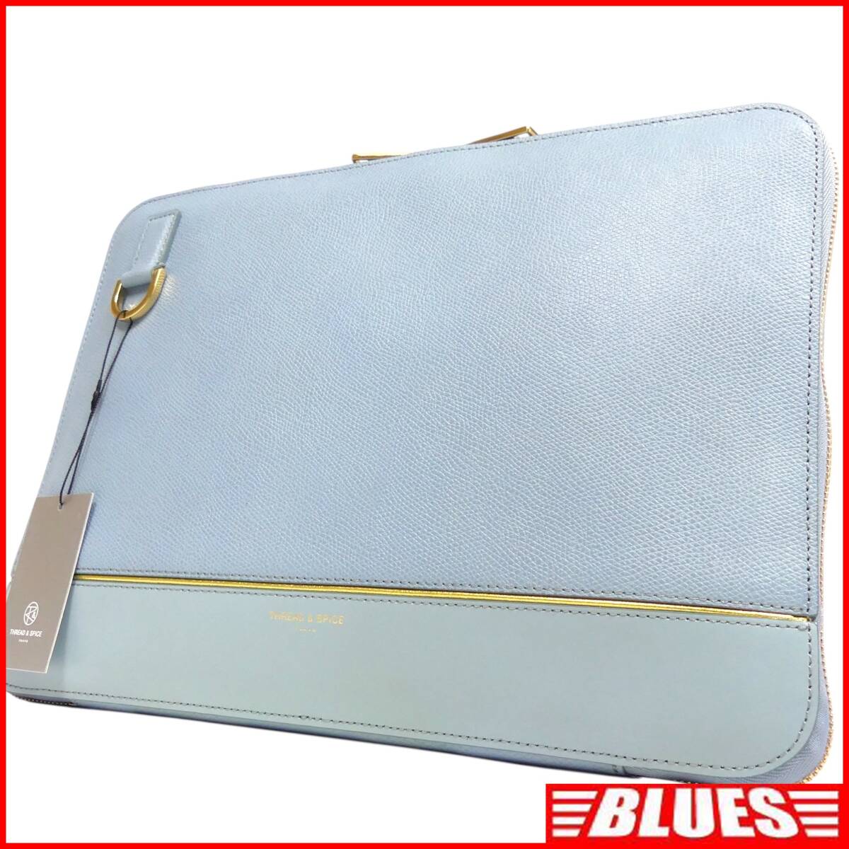 - 即決★THREAD&SPICE★未使用 セカンドバッグ スレッドアンドスパイス メンズ レザー 水色 革 本皮 クラッチバッグ 通勤 カバン 出張 かばん