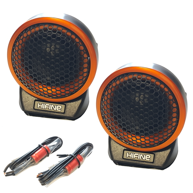 - オレンジリングツイータースピーカー クロスオーバー付ドームツイーター2個セット 高音域の音質改善 120Wカーオーデイオの音質と音響アップ