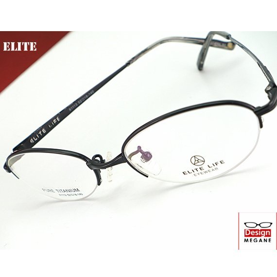 > 即決★眼鏡一式☆度入レンズ込★designメガネ★ELITE LIFE Eyewear 純チタン素材 ハーフリム 度付き/度なし/伊達メガネ/ 【メガネ通販】
