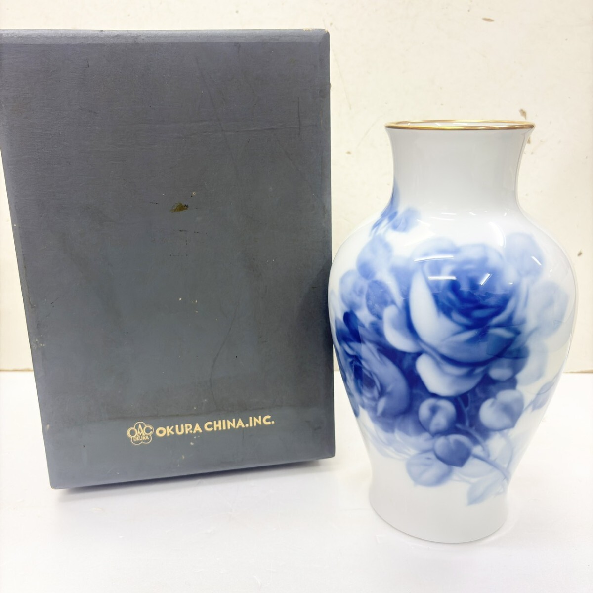 - 大倉陶園 ブルーローズ フラワーベース 花瓶 花器 花生!
