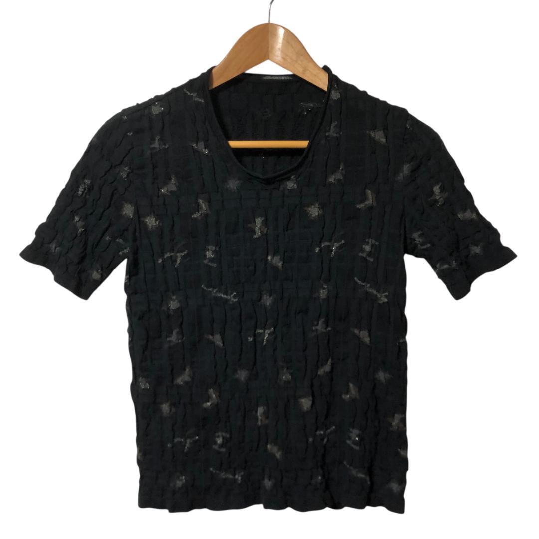 > HaaT ISSEY MIYAKE ハート イッセイミヤケ 3D 総柄 カットソー 半袖 2 黒系 日本製 レディース M1