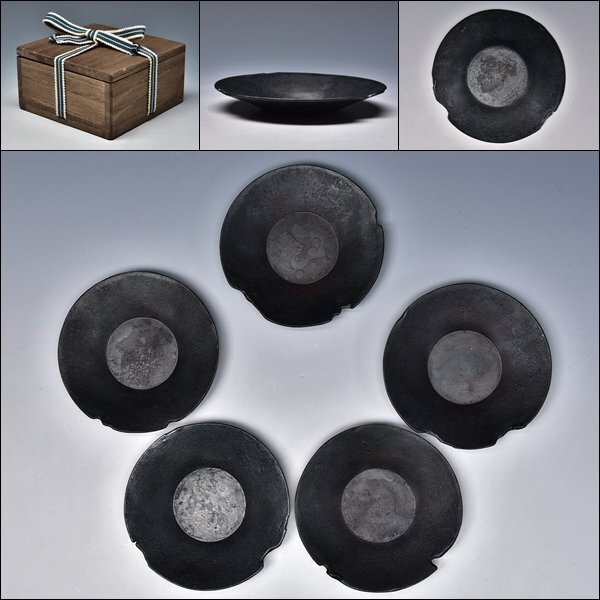 - SP5884 時代 鉄 鍛鉄 鍛造 茶托 五客 煎茶道具 茶道具 茶器 合箱
