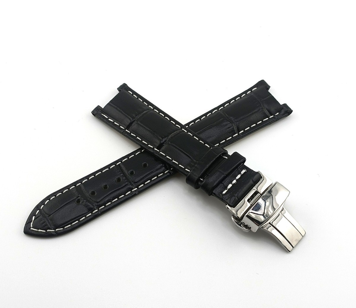 - 20mm 腕時計 凹型 レザー ベルト ブラック×ホワイト 黒×白 Dバックル 防水仕様 【対応】 カルティエ パシャ 38 Cartier