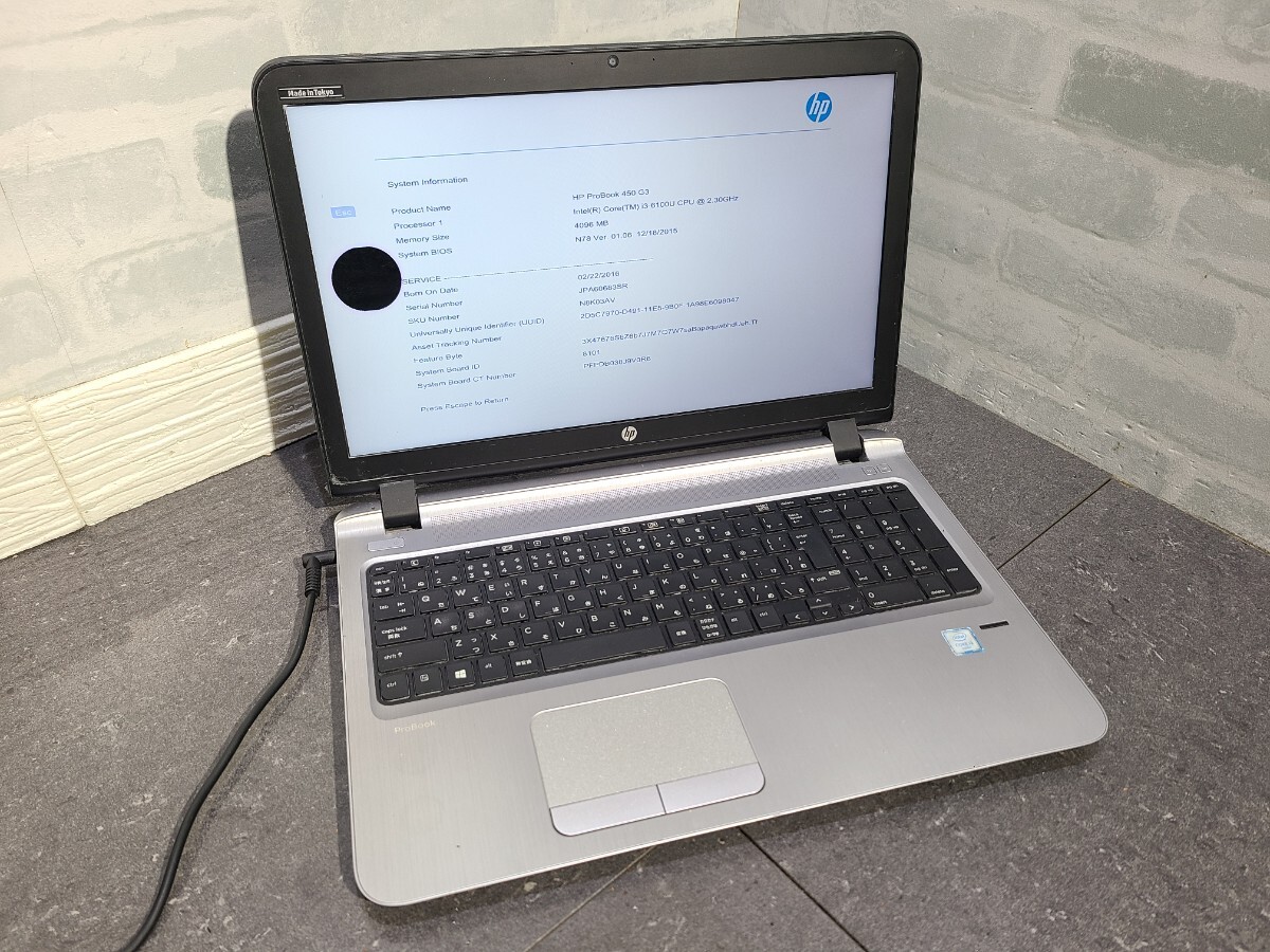 - 【ジャンク品】管2U64 hp ProBook 450 G3 CPU core i3-6100U Bios起動OK HDD無し、マウント有り、メモリー4GB、バッテリー有り