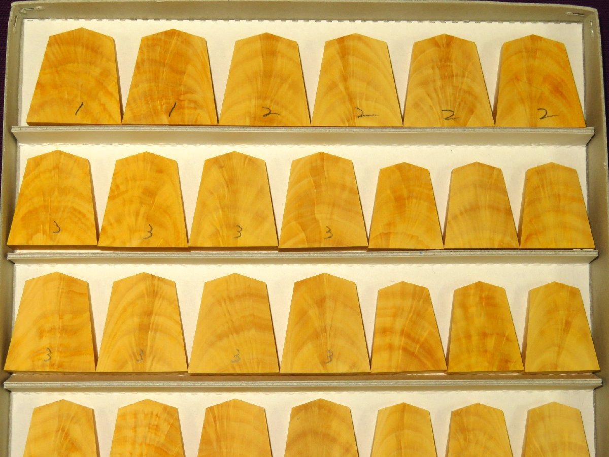 薩摩黄楊、孔雀杢系の駒木地です。成形精度は高いと思います。仕上もよく恐らくこのまま字母紙が貼れると思います。