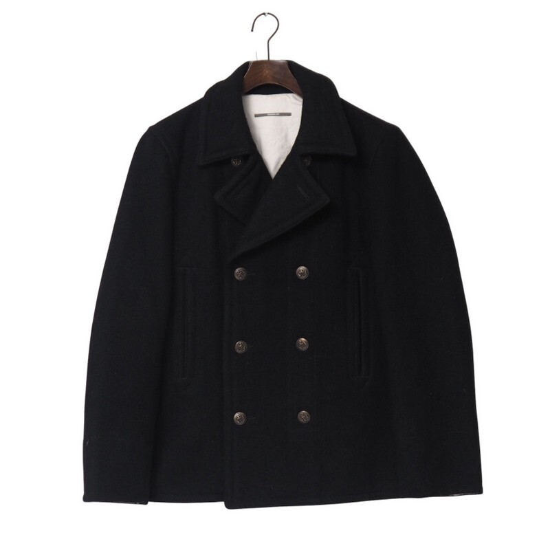 > TJ3745▼トゥモローランド TOMORROWLAND*ウールメルトン ピーコート Pコート*メタルボタン*Lサイズ*ブラック