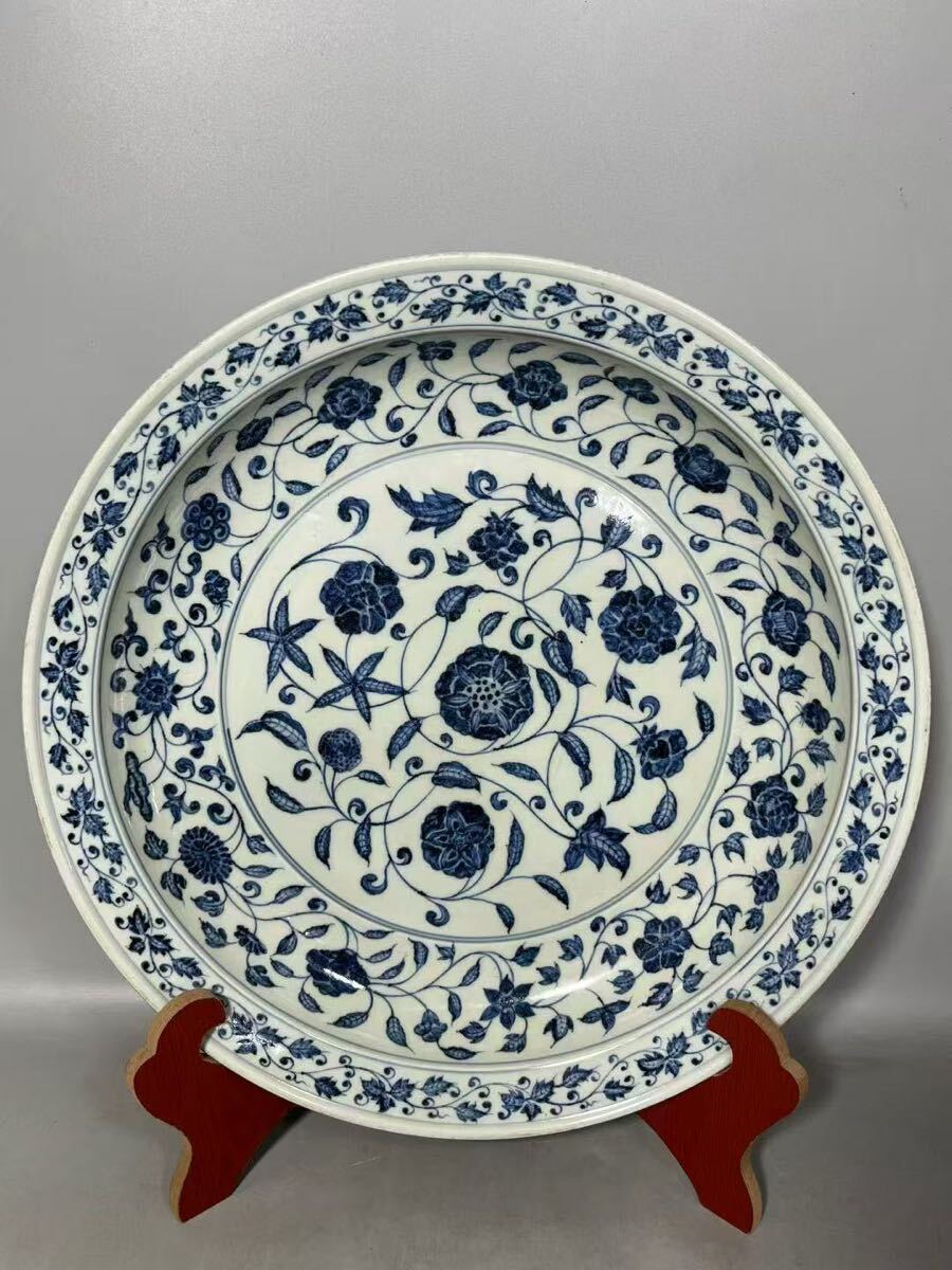 - 【雅園】中国古美術 元時代 青花 皿 大皿 古玩 骨董 時代物 古美術 唐物 当時物 置物 陶磁器 旧家蔵出 置物 高さ35cm