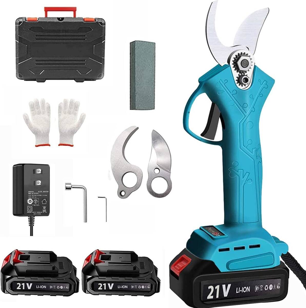 - 大特価 充電式剪定ばさみ 電動ハサミ 剪定鋏 コードレス 充電式 切断直径30mm 2個バッテリー付き 軽量 園芸用剪定用具 ケース付 替刃セット