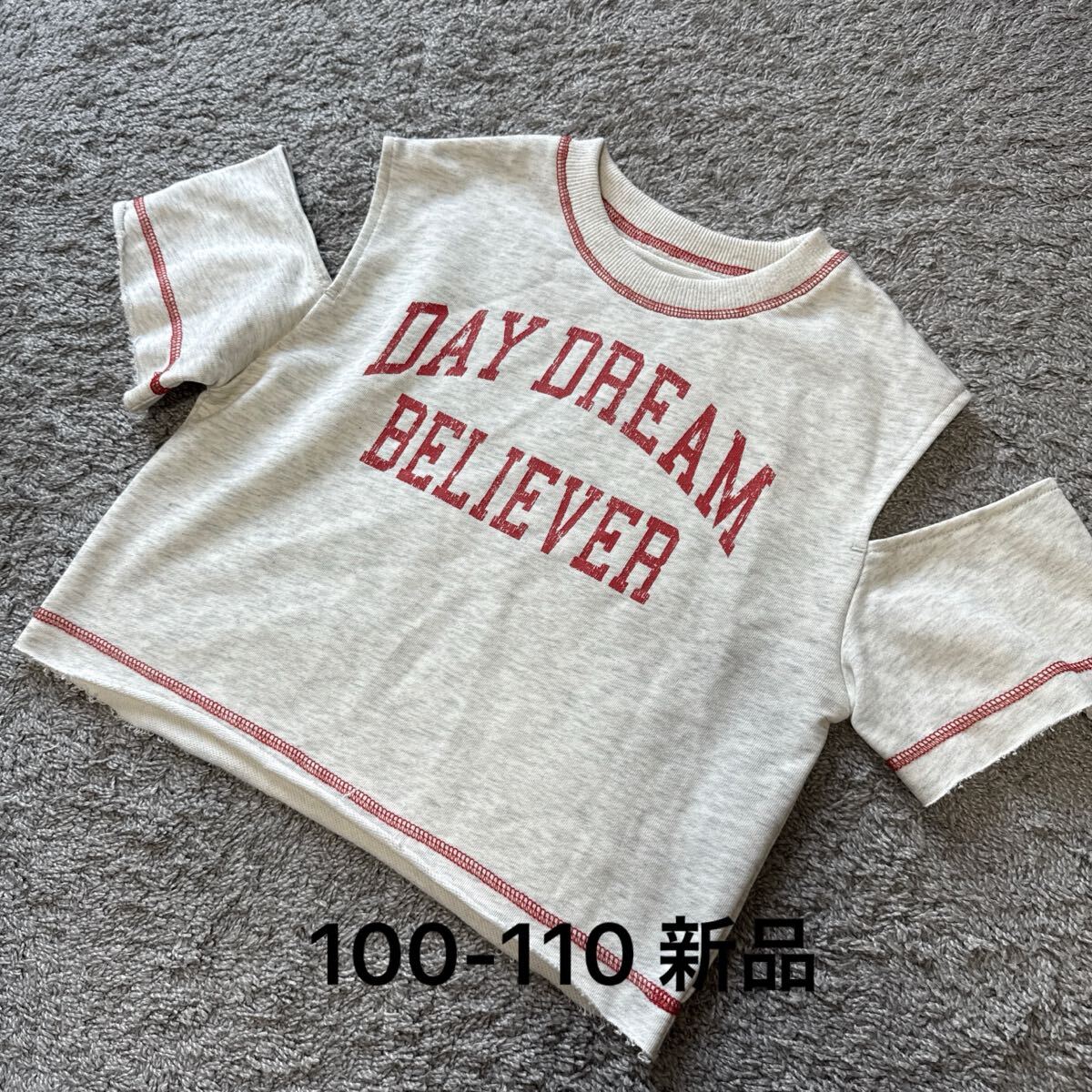 > ロゴプリントオープンショルダーTシャツ杢グレー100-110★ゆうパケット配送可能★新品36