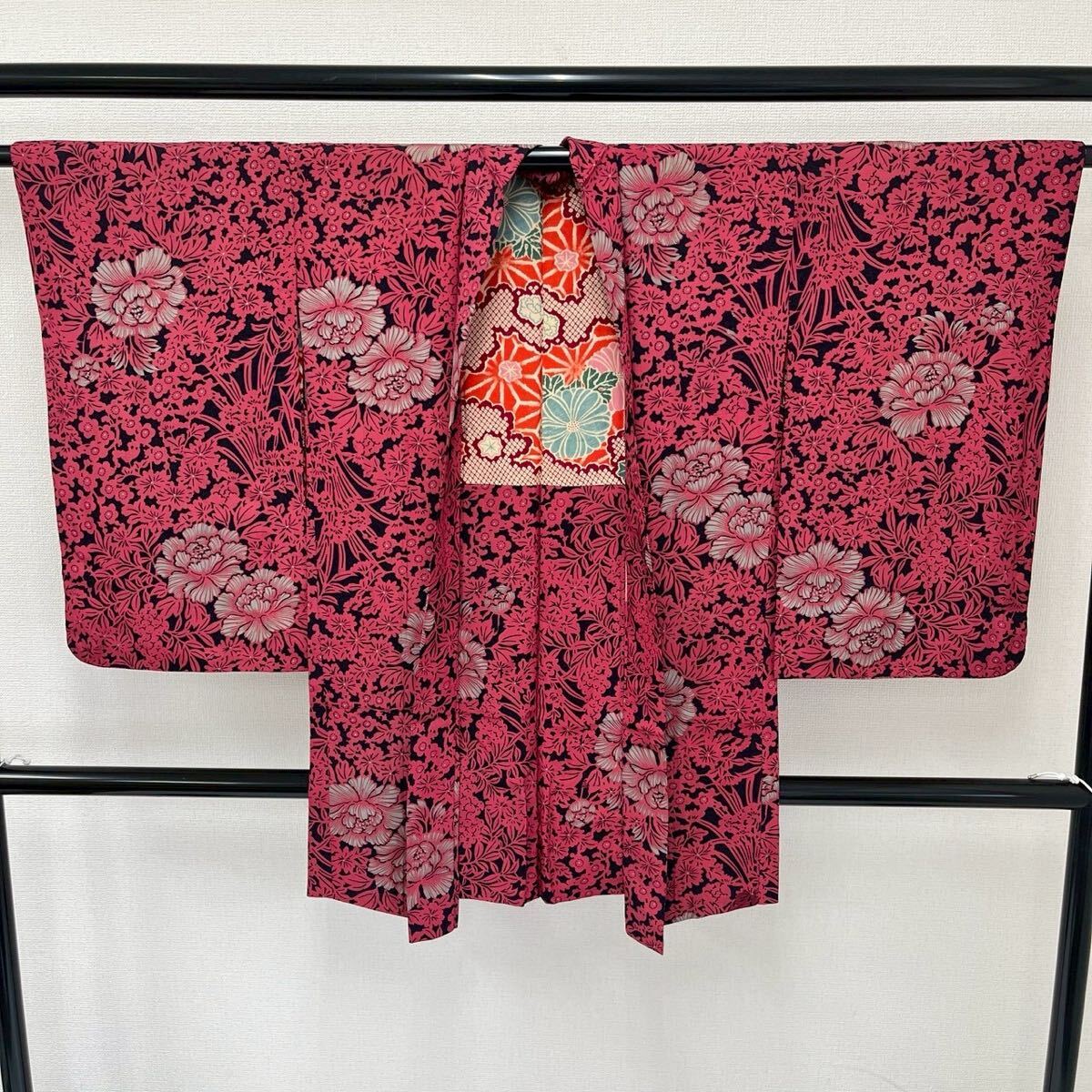 - アンティーク 羽織 着丈93 可愛い花柄 正絹 着物 W-4791