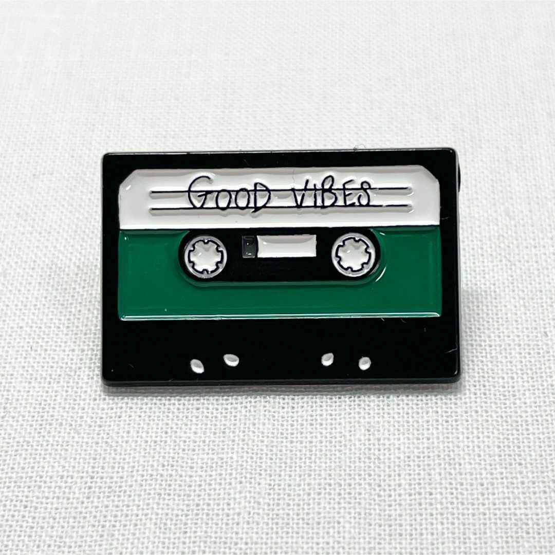 - 【ピンバッジ】カセットテープ レトロ グリーン 音楽