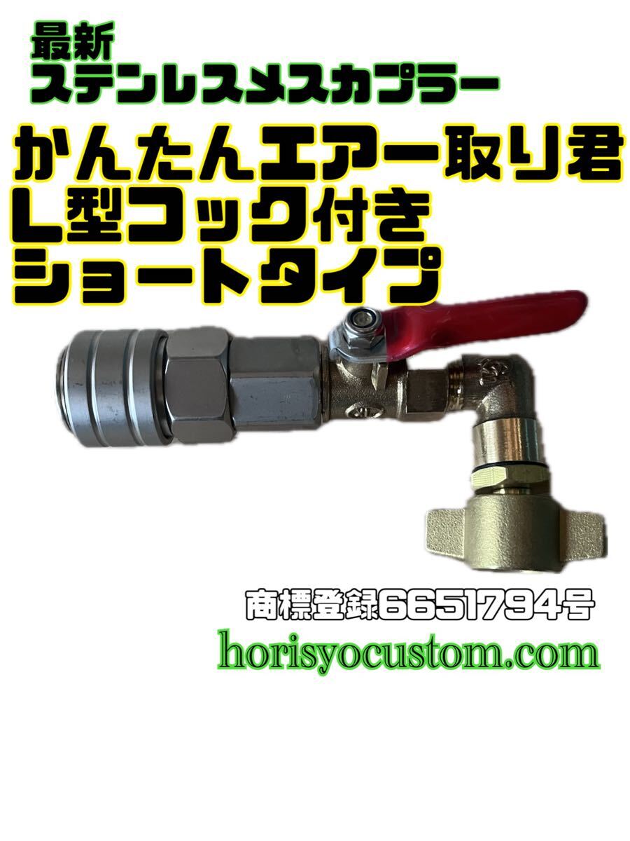 > 最新 ステンレス製 かんたんエアー取り君 ショートタイプ コック付き L型トラック テストニップル エアー取り出しキット
