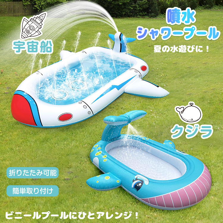 - 送料無料 噴水シャワープール クジラ 宇宙船 くじら ビニールプール 噴水プール 噴水 家庭用 水遊び キッズ お庭 ベランダ 蛇口 夏 ny503