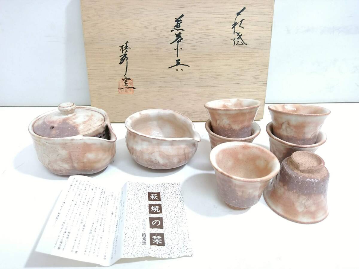 - 【うぶだし】萩焼 萩陶苑 椿秀窯 煎茶器揃/宝瓶/湯冷まし/茶杯×6客/急須/泡瓶/湯冷まし/湯呑/切り高台/煎茶道具/切高台/和食器/LHQ1-8