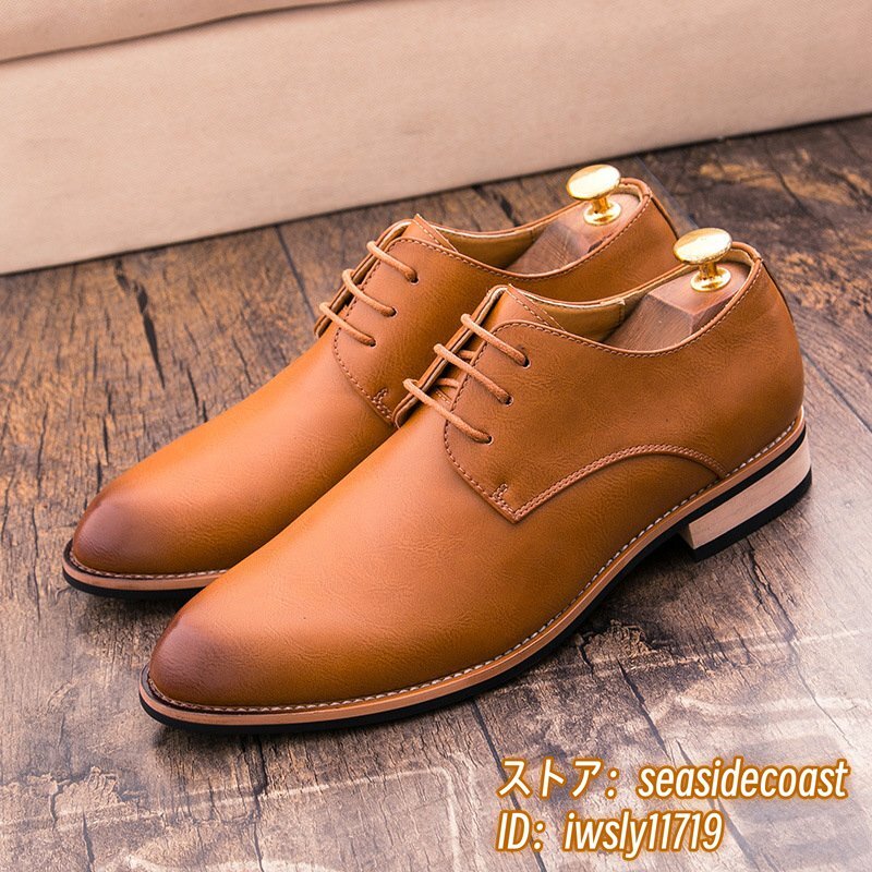 - 高級品*ビジネスシューズ メンズ 牛革 レザーシューズ 手作り レトロ 紳士靴 イギリス風 革靴 通勤 カジュアル 冠婚葬祭 ブラウン 26.5cm