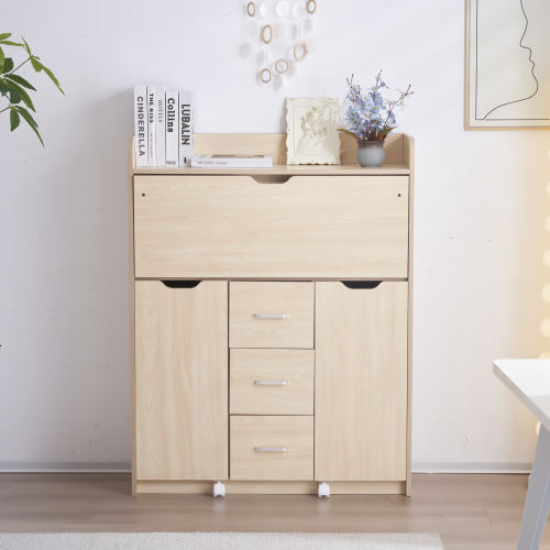 - 【ナチュラル】学習机 デスク パソコンデスク 勉強机 折り畳み天板 引き出し pcデスク 棚付き 収納 省スペース リビング学習 ワー KU368
