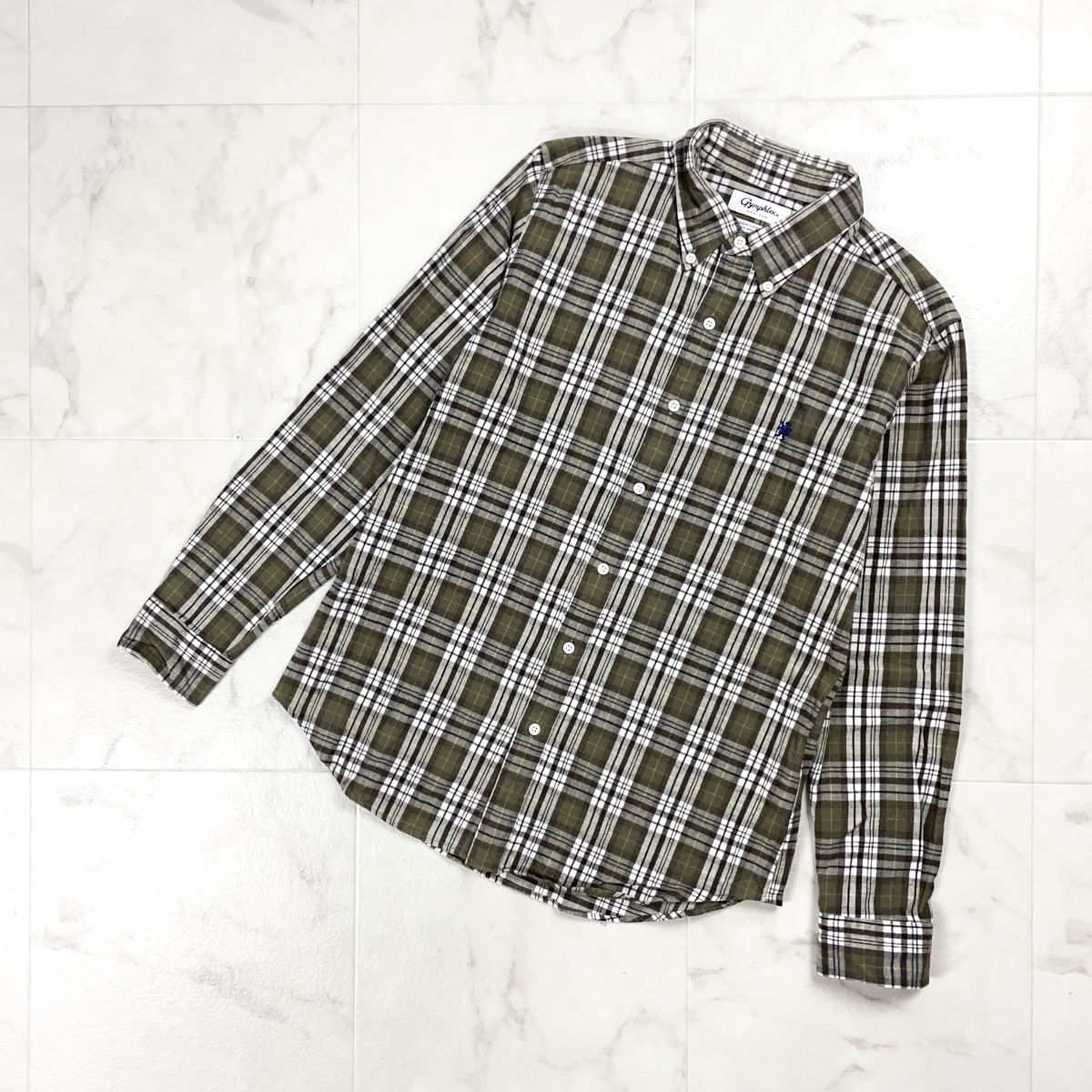 > 美品 Gymphlex ジムフレックス ボタンダウンチェックシャツ 長袖 ロゴ刺繍 微起毛 メンズ ブラウン 茶色 ベージュ サイズ16*GD331