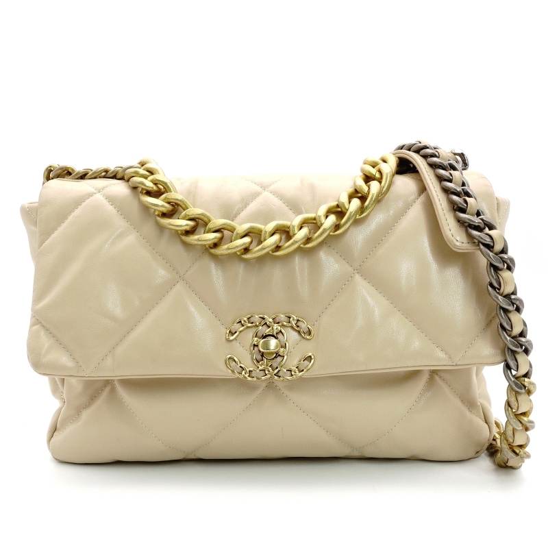 - シャネル CHANEL シャネル19 ラージ ショルダーバッグ ラムスキン ベージュ 28番台 チェーンショルダー 7-7-1111