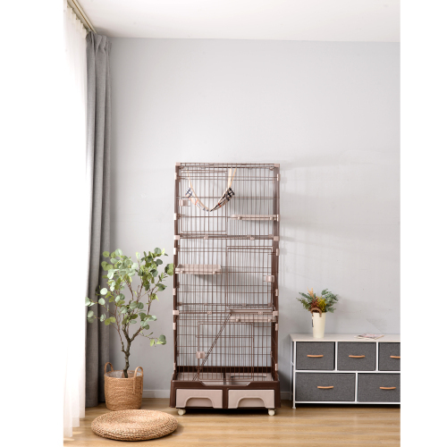 - 猫 ケージ トイレ付 ハンモック付 収納型 キャットケージ 3段 1段2段可能 キャスター付 キャットハウス 【コーヒー】 KU589