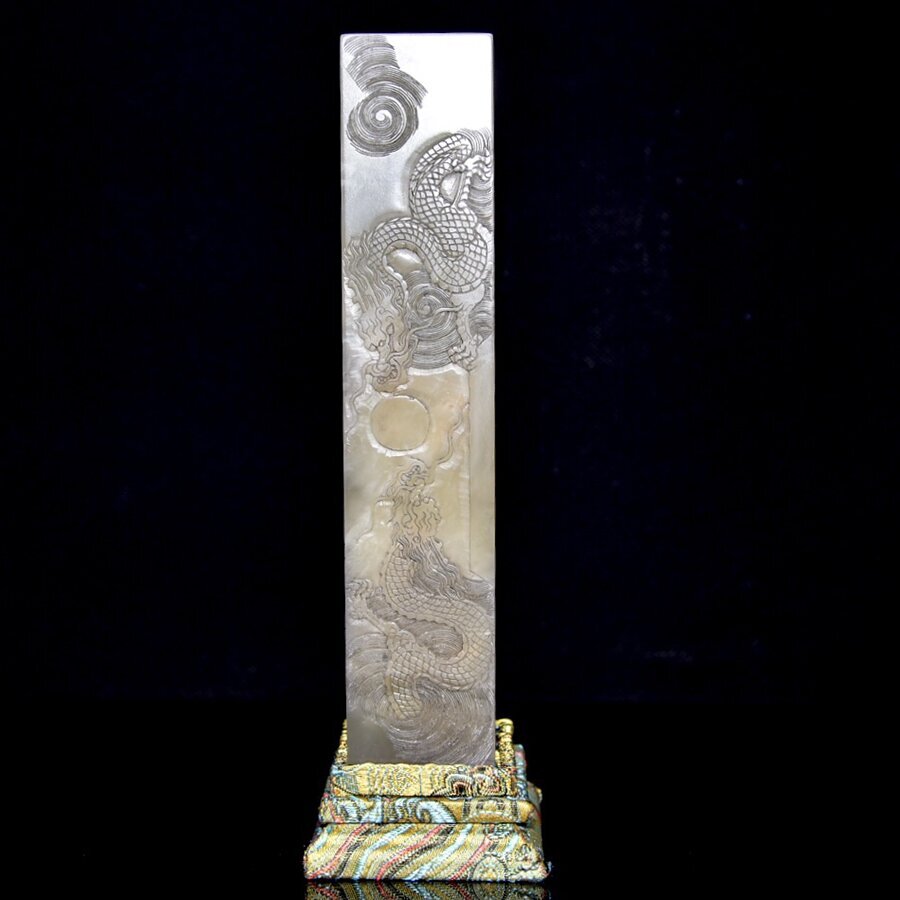 - ▽鴻▽清朝時代 寿山石 ライチ凍石彫 龍紋印章 乾隆歳次年作 箱付 時代物 中国古美術 骨董品