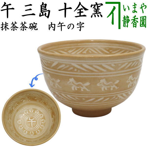 - 茶道具 抹茶茶碗 干支 午 干支茶碗 三島 午 内午の字 十全窯 干支午 御題明