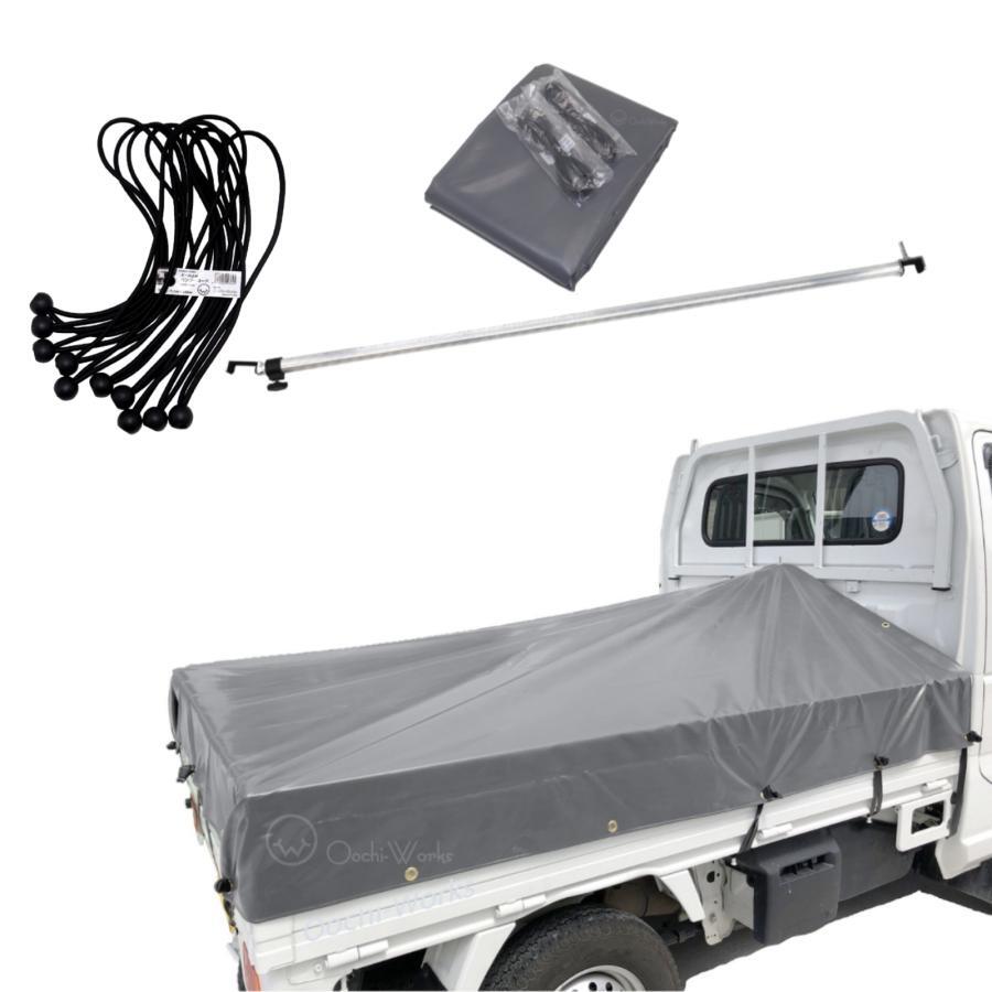 - バンジーコード 10本付 軽トラックシート スロープ型 伸縮式荷台ポールセット グレー 標準荷台軽トラック用 エステル帆布 荷台シート