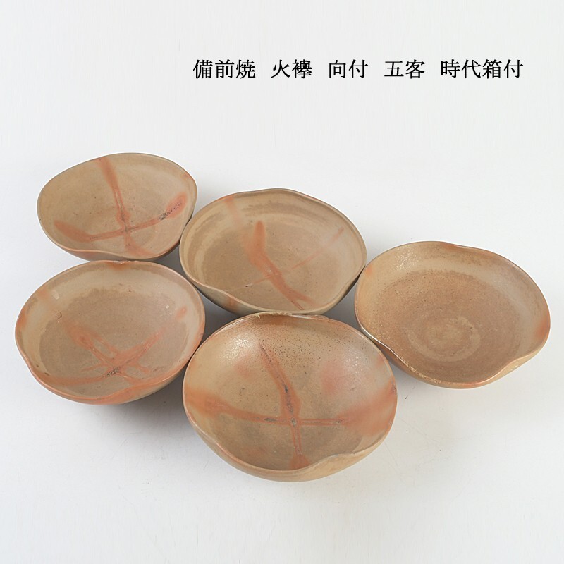 - 和食器 備前焼 火襷 向付 五客 時代箱付 OFQA