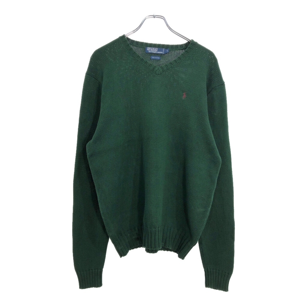 > 90年代 Polo by Ralph Lauren ポロ ラルフローレン Vネック コットンニットセーター グリーン(メンズ L)中古 古着 V0611