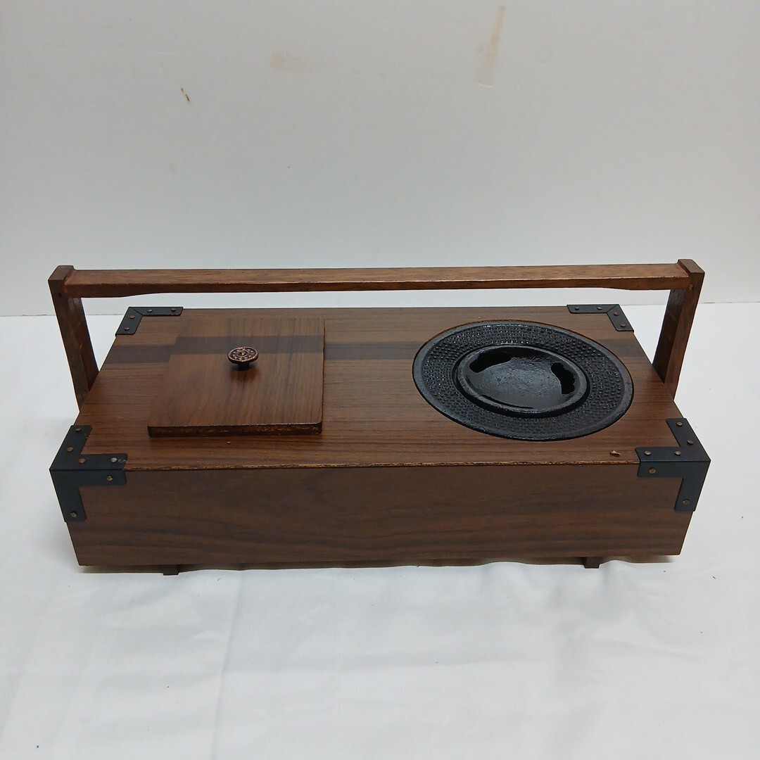 - 南部鉄器 灰皿 煙草盆 木製 昭和レトロ アンティーク 鉄器 昭和期 煙草具 骨董品 古民具 タバコ灰皿セット 中古保管品