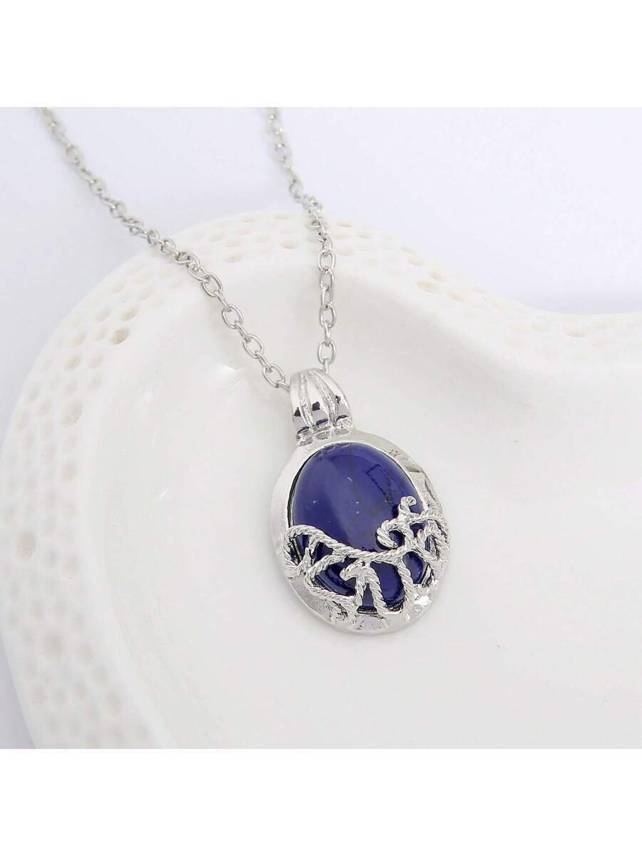 - ジュエリー レディース ネックレス チェーン ブルージェムストーン ペンダントネックレス 銀色装飾 ガーリー パーティ アクセサリ