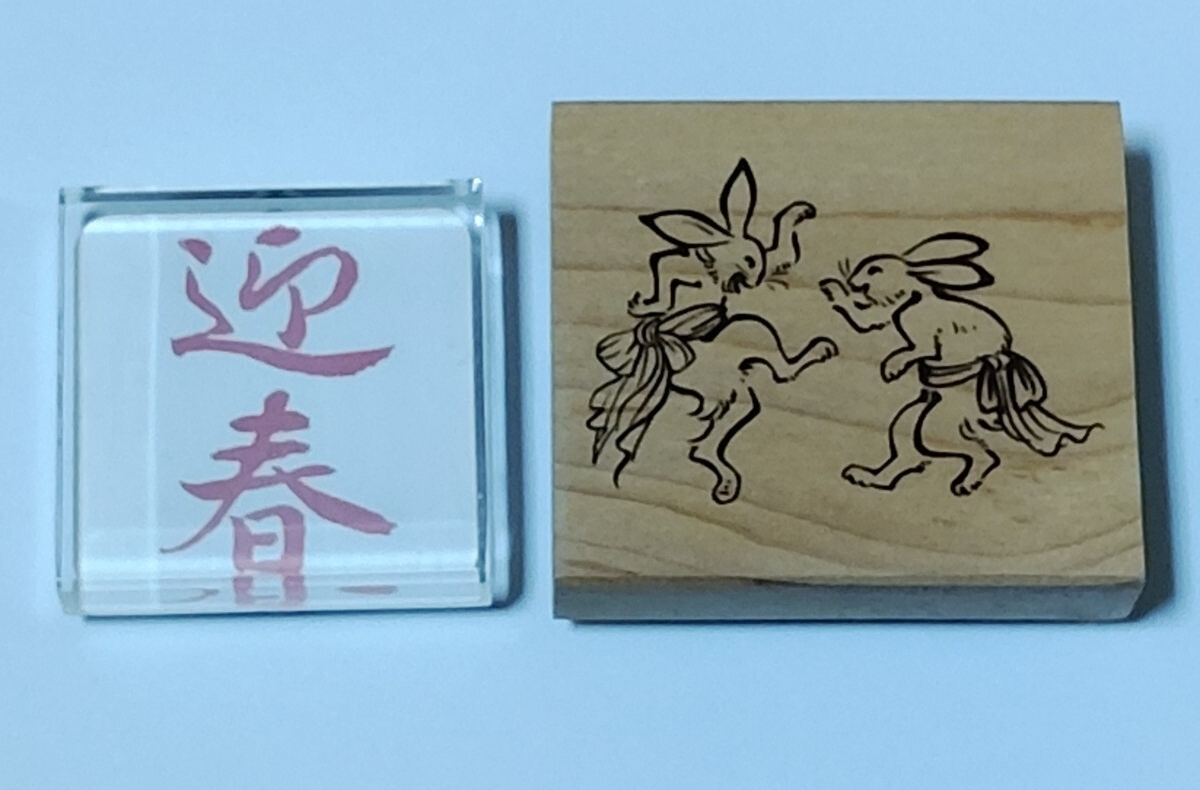 - Y2094 : 鳥獣戯画 & 迎春 スタンプ 中古 ハンコ